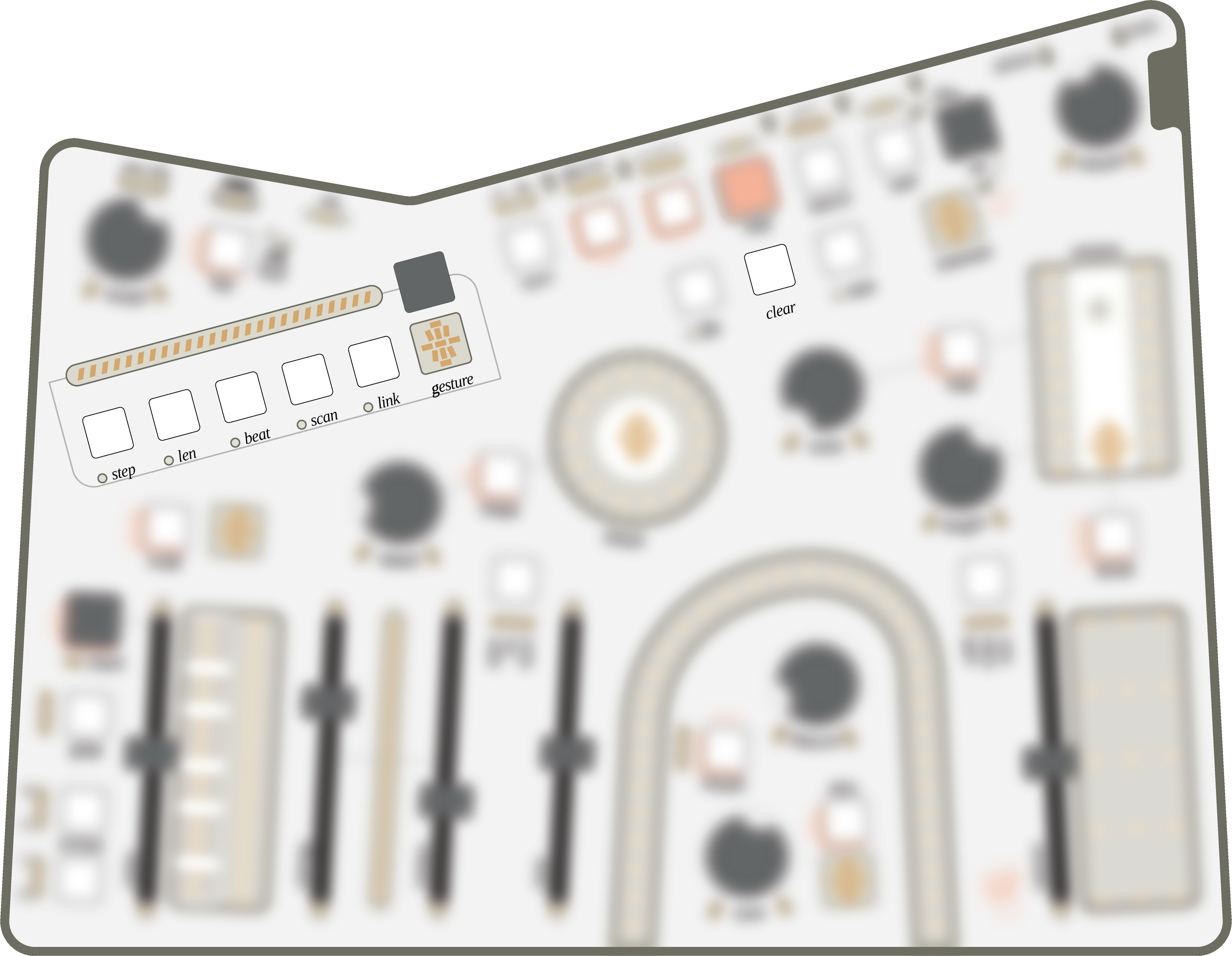 Beware though! These updates won't magically be linked to the clock's phase. Instead the sampling happens in terms of the gesture's duration. A recording that is 3.5 beats long will have an irregular pulse to the steps. This can be used to creative rhythmic effect, or see the len and beat modifiers for a more rigid effect.